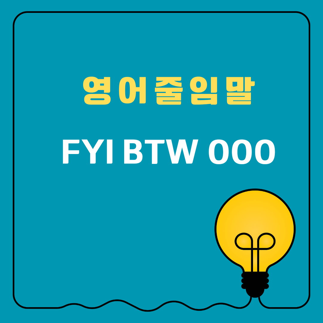 비즈니스영어를 잘 하기 위해서는 영어줄임말을 알아두는 것이 좋습니다. 오늘은 비즈니스영어에서 자주 사용하는 영어줄임말 fyi btw ooo에 관해 알아보겠습니다. 쉽게! 간단하게 알아두고 이 영어줄임말이 나왔을 때 바로 이해가 되면 업무시간을 줄이는데 도움이 될 것 입니다.